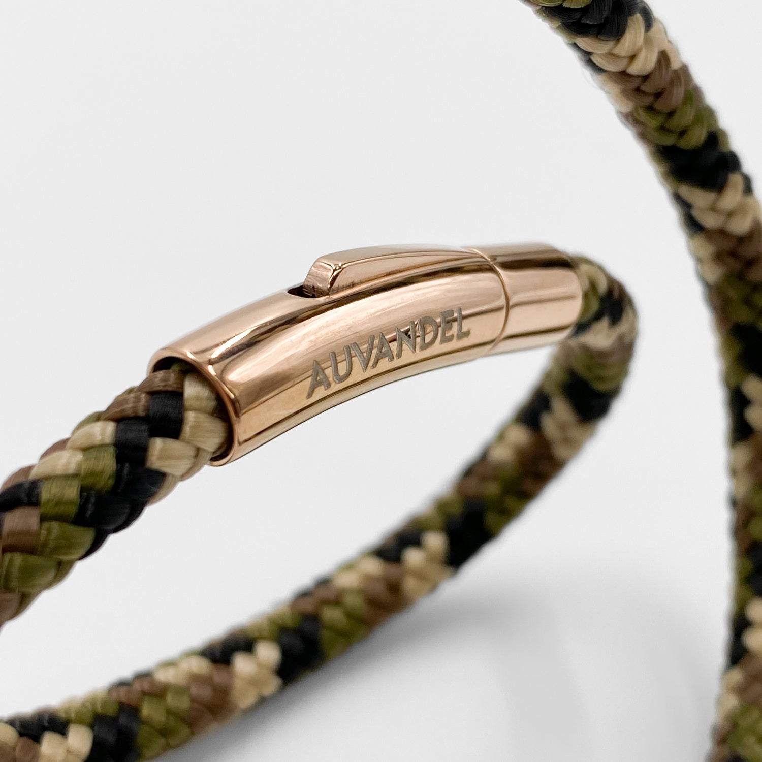 Das doppelt gewickelte Paracordarmband ist mit einem Bajonettverschluss aus Edelstahl versehen, dass, das Armband sicher am Handgelenk hält.