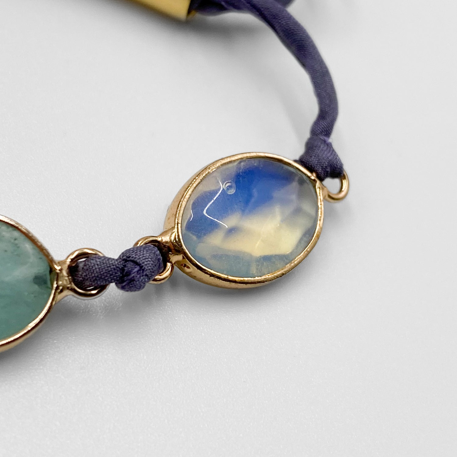 Das STELLA Seidenarmband besteht aus einem feinen Seidenband verziert mit unterschiedlichen Glassteinen. Alle Glassteine sind immer individuell und können von den Bildern abweichen.